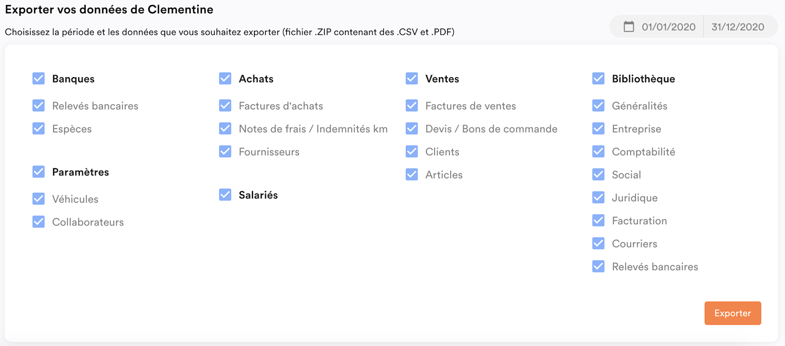 Clementine vous permet d'exporter les données présentes dans votre plateforme.